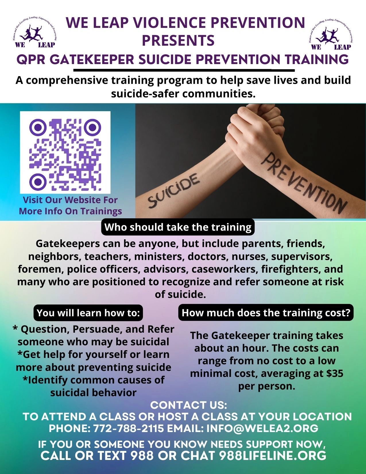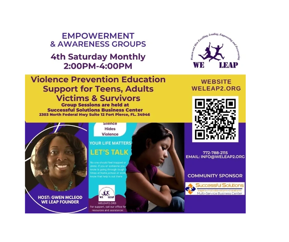 WE LEAP IS AN EDUCATIONAL VIOLENCE PREVENTION & AWARENESS ORGANIZATION RAISING AWARENESS TO END VIOLENCE BEFORE IT BEGINS